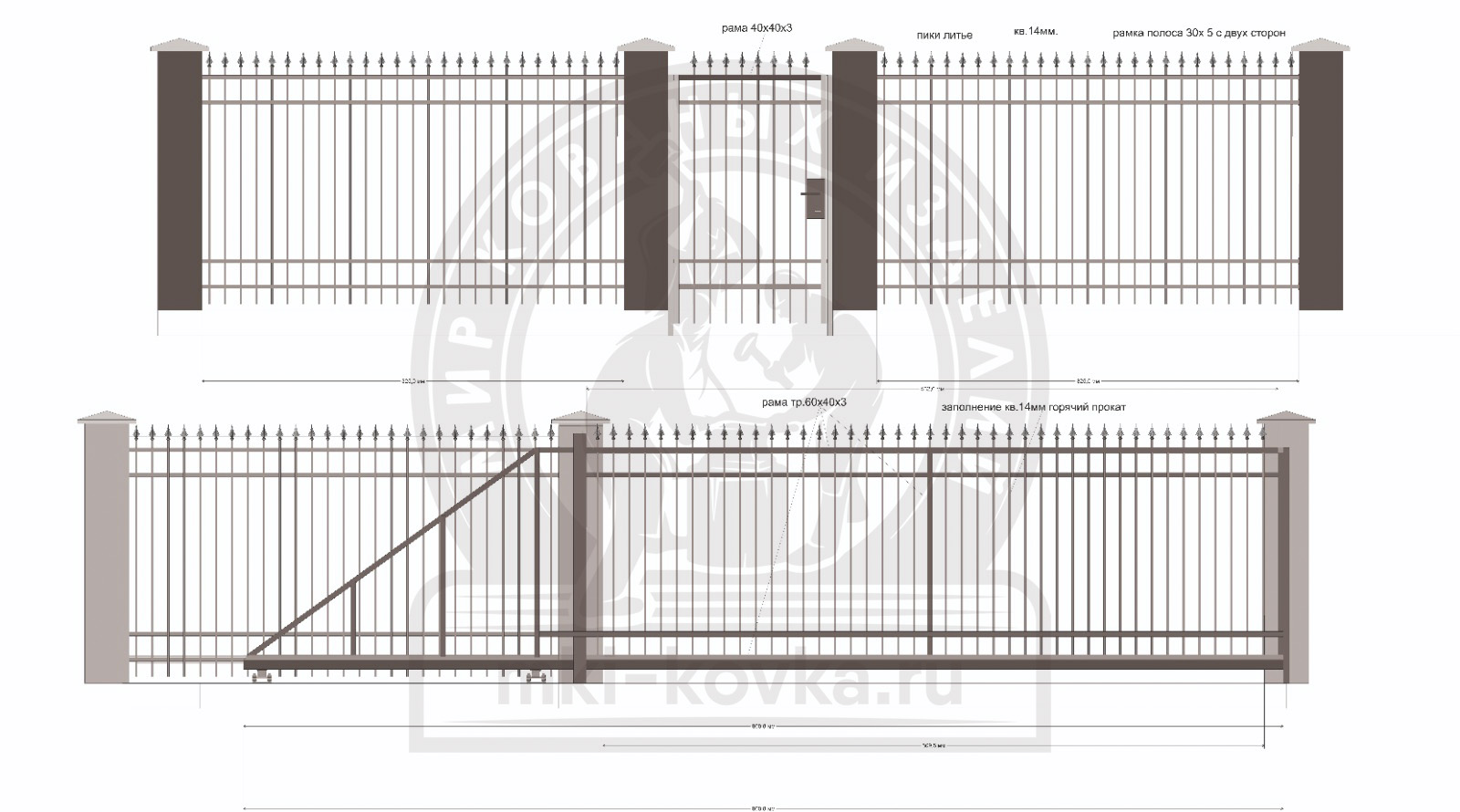 Эскиз Кованые ворота и калитка № 316 Кованые ворота и калитка № 316