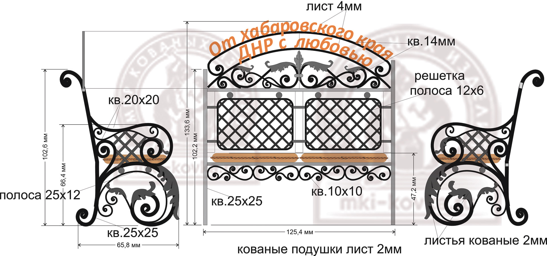 • сиденье скамейки, кованые подушки стальной лист 2мм.