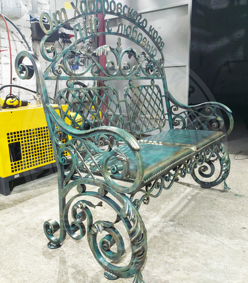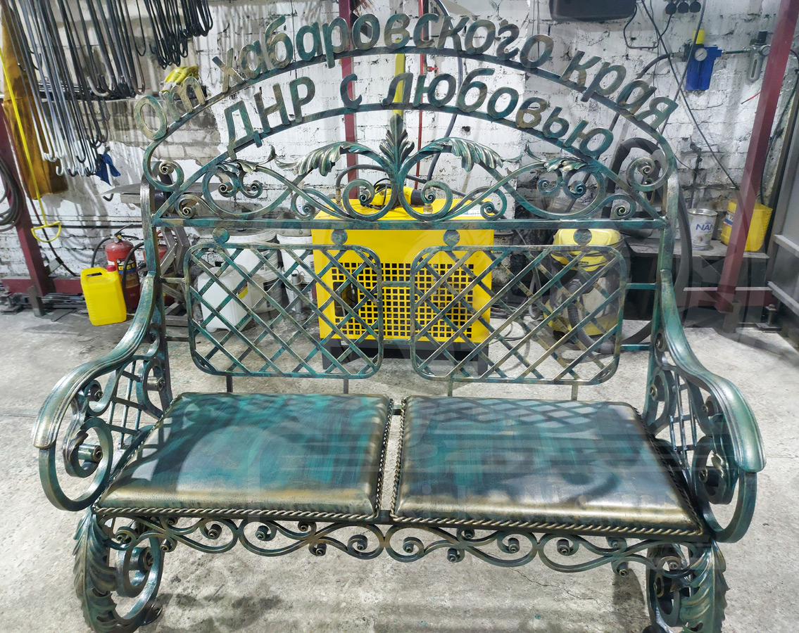 Кованая скамейка для сада или парка. Ширина 1,25 м. Индивидуальный проект №93.